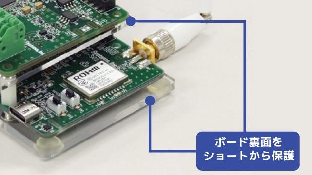 さらに、BluetoothやWi-Fiなどが使用するISM帯(2.4GHz帯)と比べて障害物の影響を受けにくく遠くまで届くため、パソコンと本ボードが離れた場所にあって配線が難しい場合にも効果を発揮します。